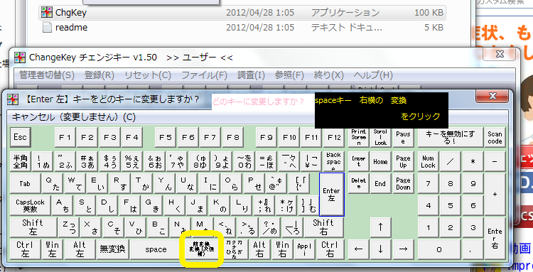 スペースキーの横