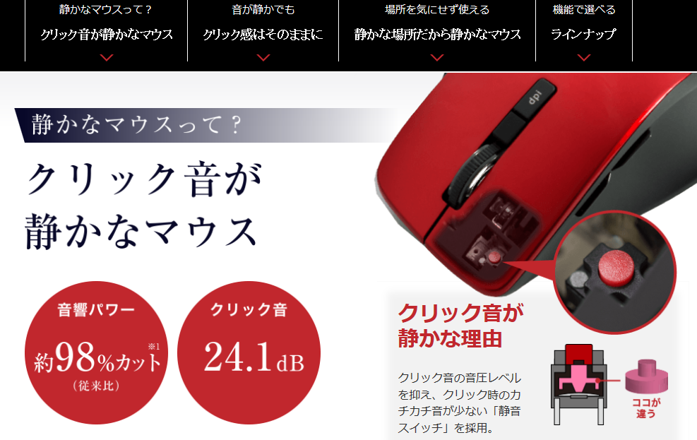 マウスの各社=音がでない「静音」のマウスがありますが